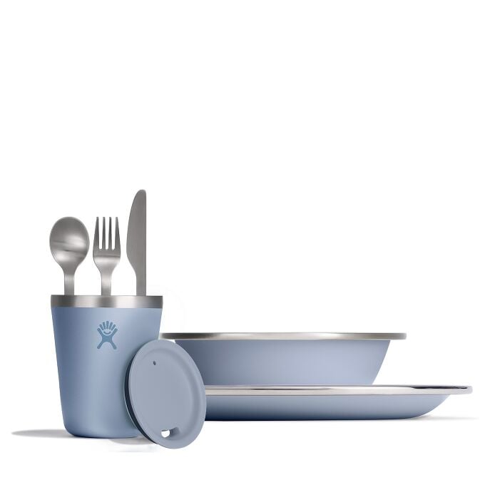 Pull up a seat with the place setting ready for meals anywhere. One plate, bowl, tumbler and flatware set lets you set the table anywhere.
